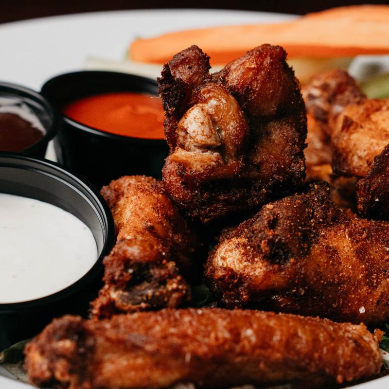 ALL OF THE Fall-off-the-bone wings, served with rabbit food & your choice of dipping sauce