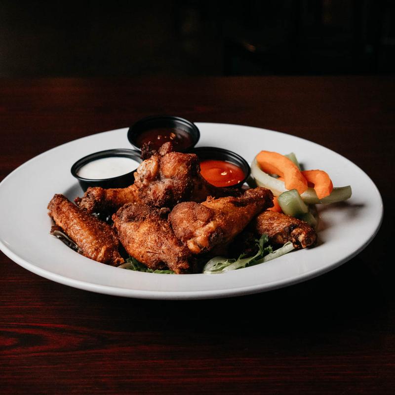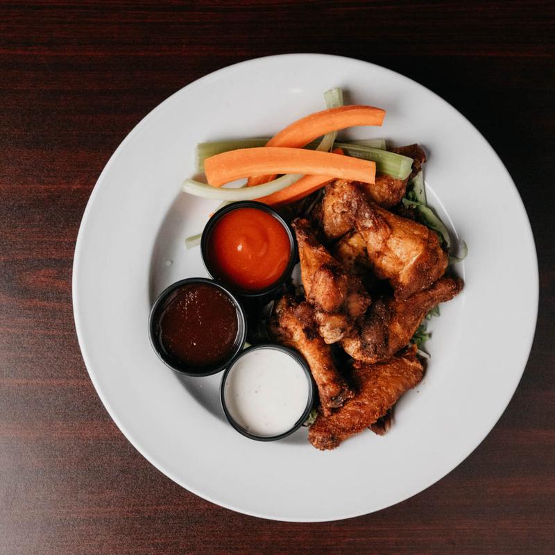 Fall-off-the-bone wings, served with rabbit food & your choice of dipping sauce