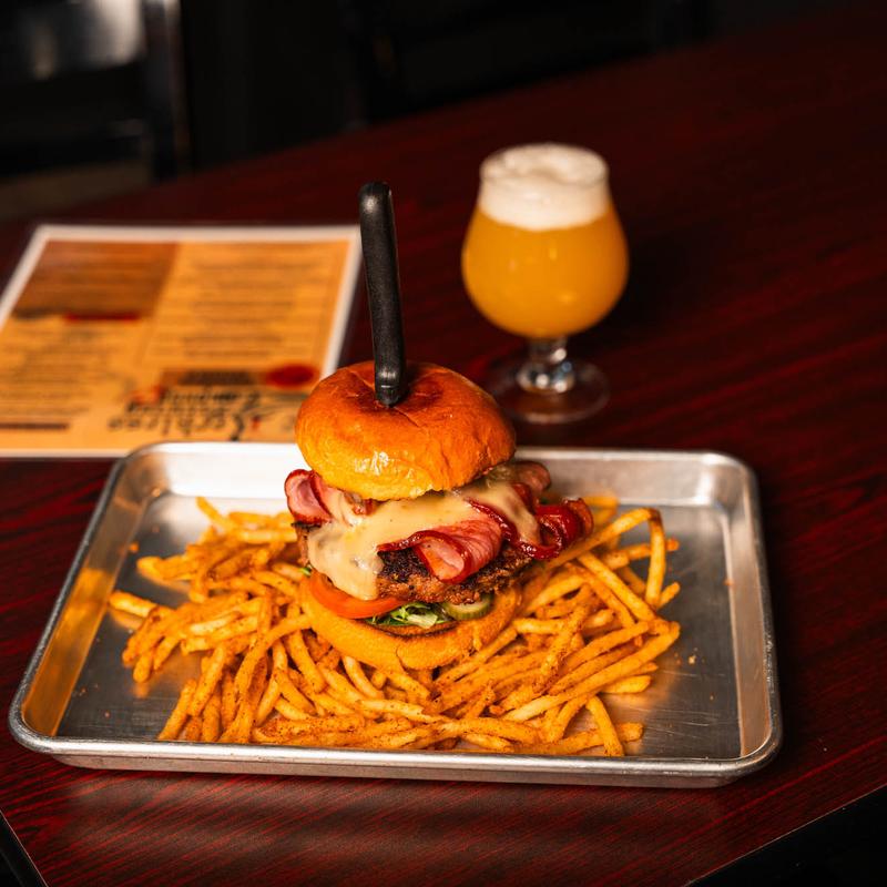 Colorado style cheesesteak with our 12-hour Smoked Brisket, Beer Cheese, Roasted Peppers, Onions, Mushrooms, & Jalapenos
